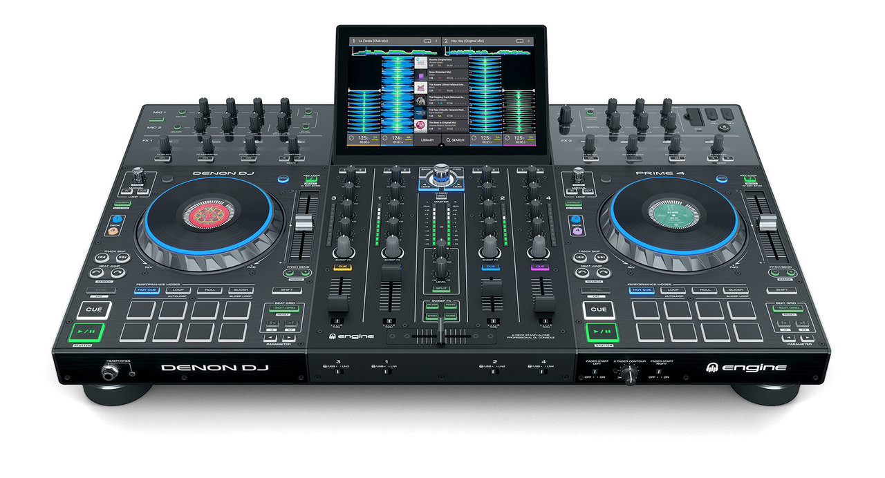 both Denon DJ’s free, Engine Prime music management software and the Prime 4 itself.