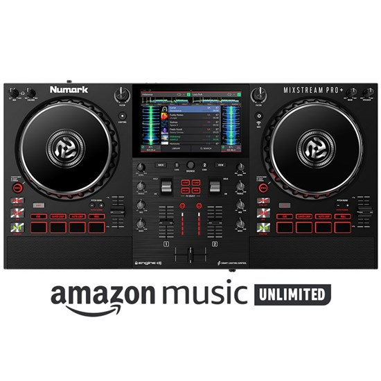 The intuitive layout and 7” high-definition touchscreen lets you browse, load and play with your music like never before. The 4 built-in effects (Echo, Flanger, Delay, and Phaser) are perfectly timed to the beat when they are triggered with the fun, interactive toggle switches. The large Filter knobs and 3-band EQ add even more excitement by providing hands-on control over the low, mid, and high frequencies to create dramatic mixes, blends, and transitions. Scratching with the large, 6” touch-sensitive platters is easy thanks to the Smart Scratch feature, which ensures that the music always stays on beat after a scratch is added to the mix. The 8 dual-layer Performance Pads feature 4 pad modes (Cue, Saved Loop, Auto Loop, Roll,) providing limitless possibilities for live mixing and ultimate creative musical freedom. Plus, since the Mixstream Pro + harnesses the power of the Engine DJ ecosystem, DJs have direct access to an ever-expanding set of advanced, professional-grade performance features. The Mixstream Pro + offers a new level of music access, performance capability and connectivity in a DJ controller. All in an easy to use, intuitive package that makes it simple and fun for DJs to connect, stream and play!